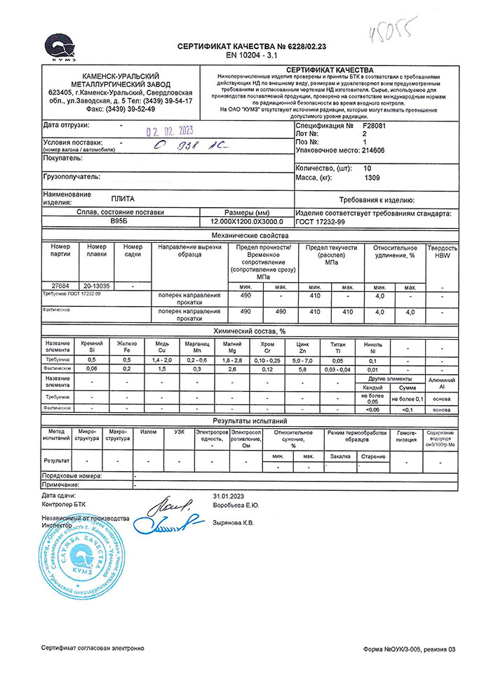Алюминиевая плита сплошной плоский профиль толщиной более 10 мм. Изготовляют согласно ГОСТ 17232-99, с химическим составом по ГОСТ 4784-97. Отбор и подготовку проб для определения химического состава цветных металлов и сплавов, осуществляют по ГОСТ 24231-80. Плиты повышенного качества производится согласно ОСТ 1-92001-90.